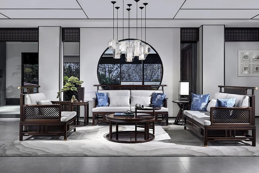 客廳家具:新中式客廳家具以簡約、大氣為主,注重實用性和舒適性。常見的有沙發(fā)、茶幾、電視柜...